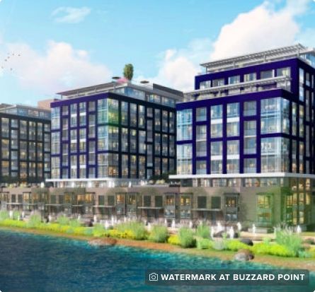 To combat flooding, Buzzard Point is currently in the process of flood-proofing its infrastructure by installing flood walls, integrating a living-shoreline resilience buffer, raising new residential buildings higher above the ground, and upgrading old developments.