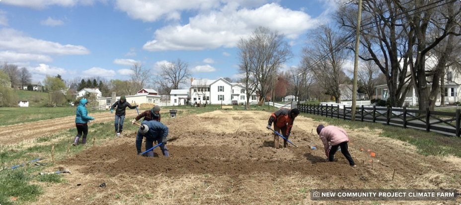 The New Community Project Climate Farm is an example of climate justice solutions led by those most impacted by climate change – in this case, immigrant climate refugees with traditional ecological knowledge of regenerative agriculture methods from their home countries. This intersectional project is a 6-acre agricultural research center for carbon farming and food production methods suitable to Rockingham County in the Shenandoah Valley of Virginia.
